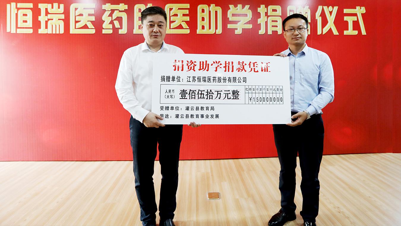 亚美国际官方医药向连云港市灌云县捐赠助医助学基金300万元。